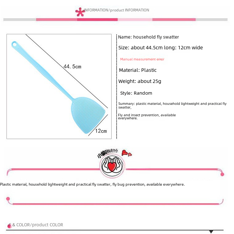 | Patent : No,Yes,North America Europe Latin America Middle East Southeast Asia,ebay,Amazon,wish,AliExpress,Independent Station,LAZADA,201706040001,Fly,Cockroach,Mosquito,termites,Non-toxic,No fragrance,Classic blue,classic pink,classic green,classic yellow,Classic purple,Lightweight and tough,Large Palm,High Palms,Gaopin Square Beat,Lengthened Square Beat,Blue green powder 3 pack,Blue and green powder 6 Pack,5 color 10 pack,Large round hole,Candy fly swatter,Bear paw fly swatter,Large 50cm,Ring strong beat,5 color 5 pack,201706040001,Zhejiang,Mosquito Spatter Mosquito Spatter Mosquito Products Fly Spatter Fly Spatter Wholesale,Baotaikang,PP,No,Yes,new chinese style |